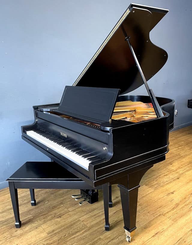 Traditional Style Acoustic Baby Grand Piano, Made in USA, Black Ebony Finish, Piano Bench with Music Storage Included.